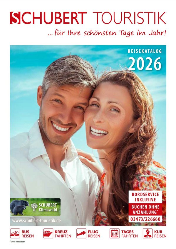 Der Sommerkatalog 2026 ist momentan im Versand und wird ab 07.10.2025 hier online bestellbar sein. Sie finden alle Reisen aber schon online und buchbar. Stöbern Sie gern durch unseren Blätterkatalog.