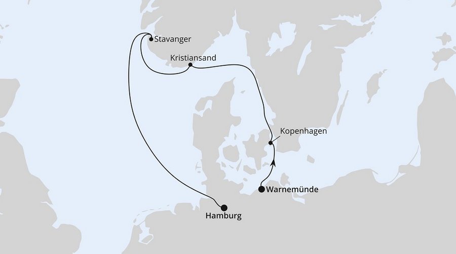 Warnemünde - Kopenhagen - Kristiansand - Stavanger - Hamburg